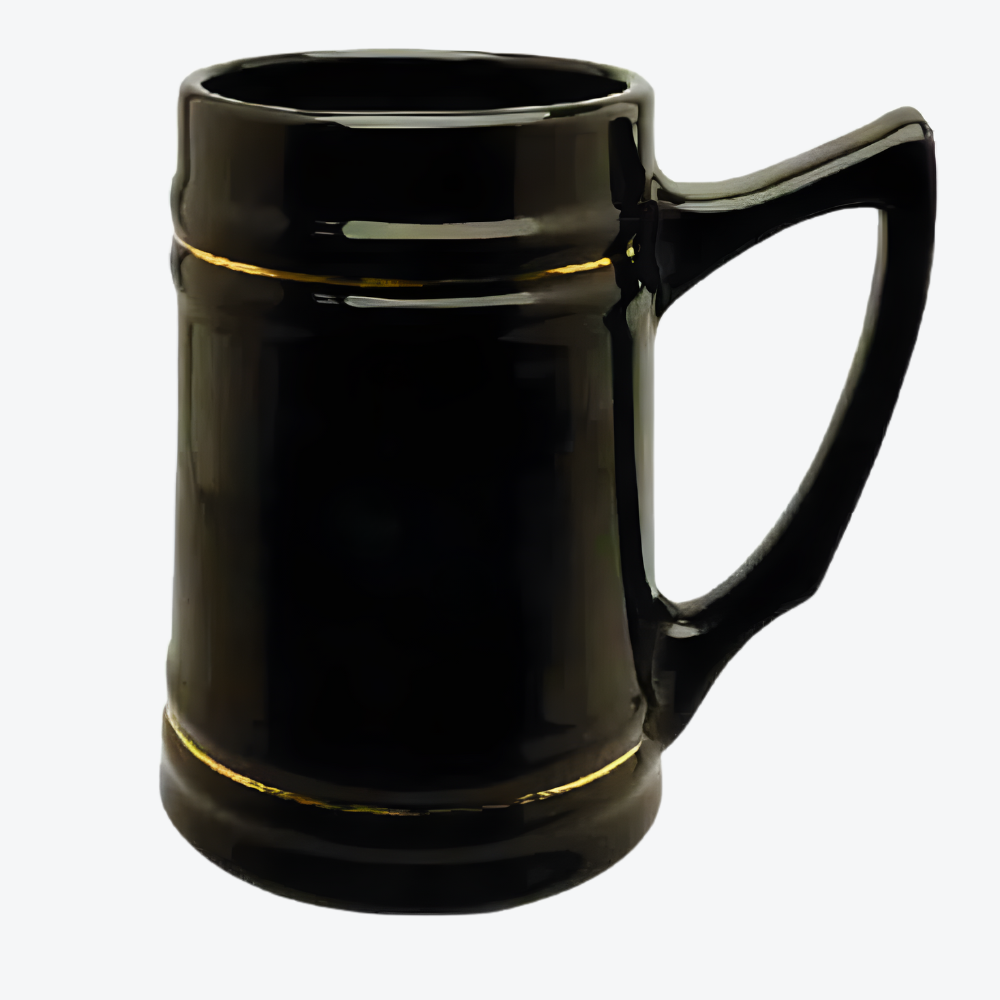 Ceramic Beer Stein 7186 – 24 oz Black with Gold Bands