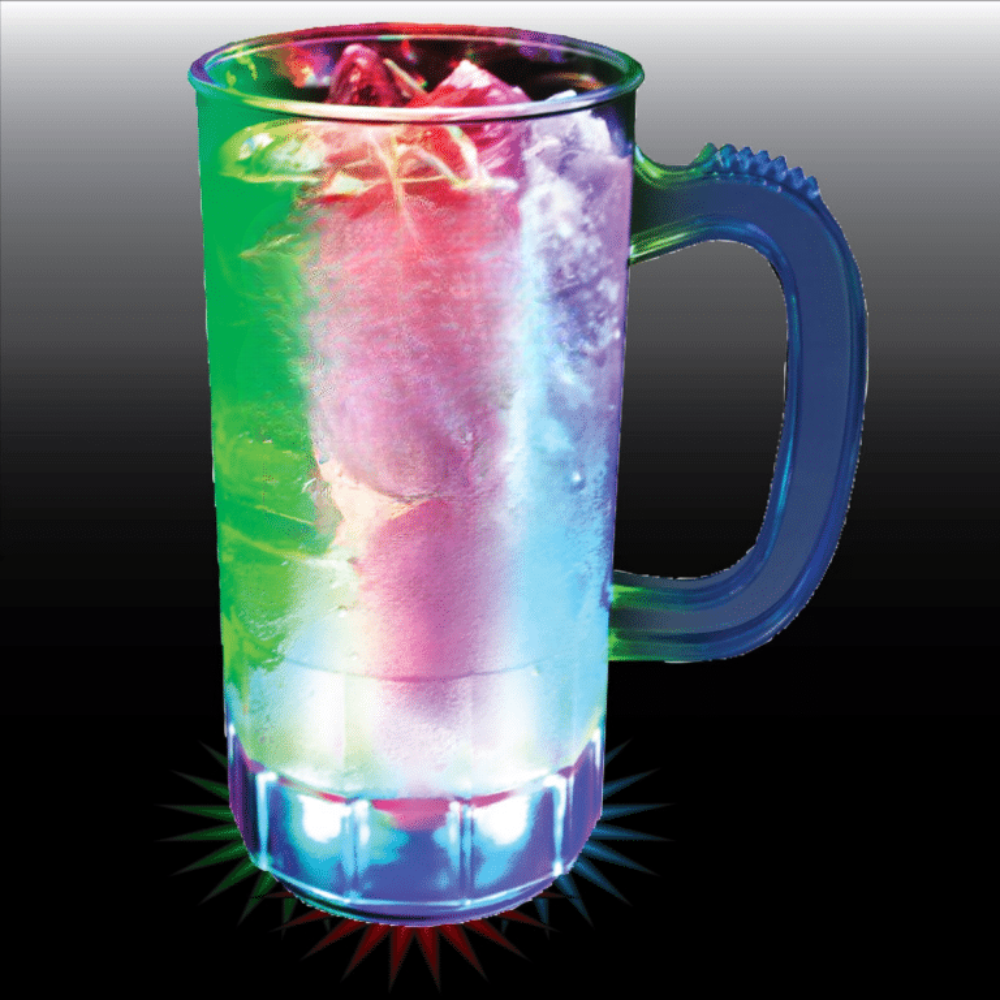 Presenting our 14 oz. Clear Plastic 3-Light Mug with a convenient handle. The base features vibrant LED lights in Red, Green, and Blue, offering six captivating light effects including all colors blinking, alternating fade, all-on mode, or individual color blinking. Crafted in the USA from resilient Clear Polystyrene Plastic, this mug includes a one-color, one-location imprint option, with possibilities for multi-color, second-side, and full-color process imprints. It’s BPA-free and recyclable, with replaceable batteries included for your convenience. Remember to hand wash only and remove electronics before washing.