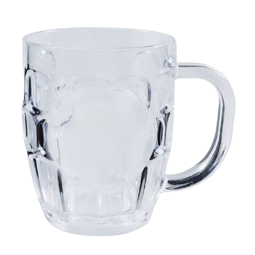 8oz. Dimple Beer Mug with Handle, Made in USA of heavy Clear Styrene Plastic. Perfect for promoting Oktoberfest events, festivals, micro-breweries and for indoor or outdoor use. Prices include a one color, one location imprint with options of additional spot color printing and full color process printing available. Recyclable, BPA free, and FDA approved. Hand wash only.