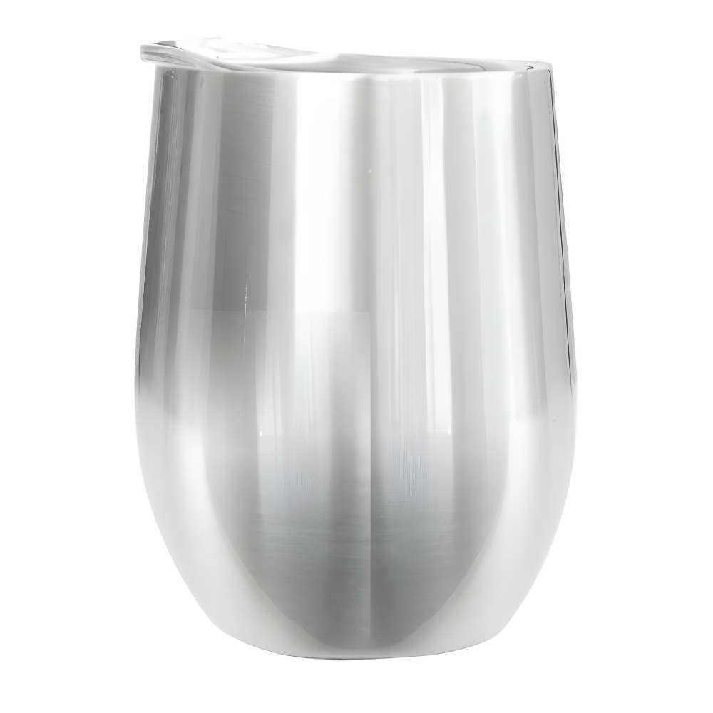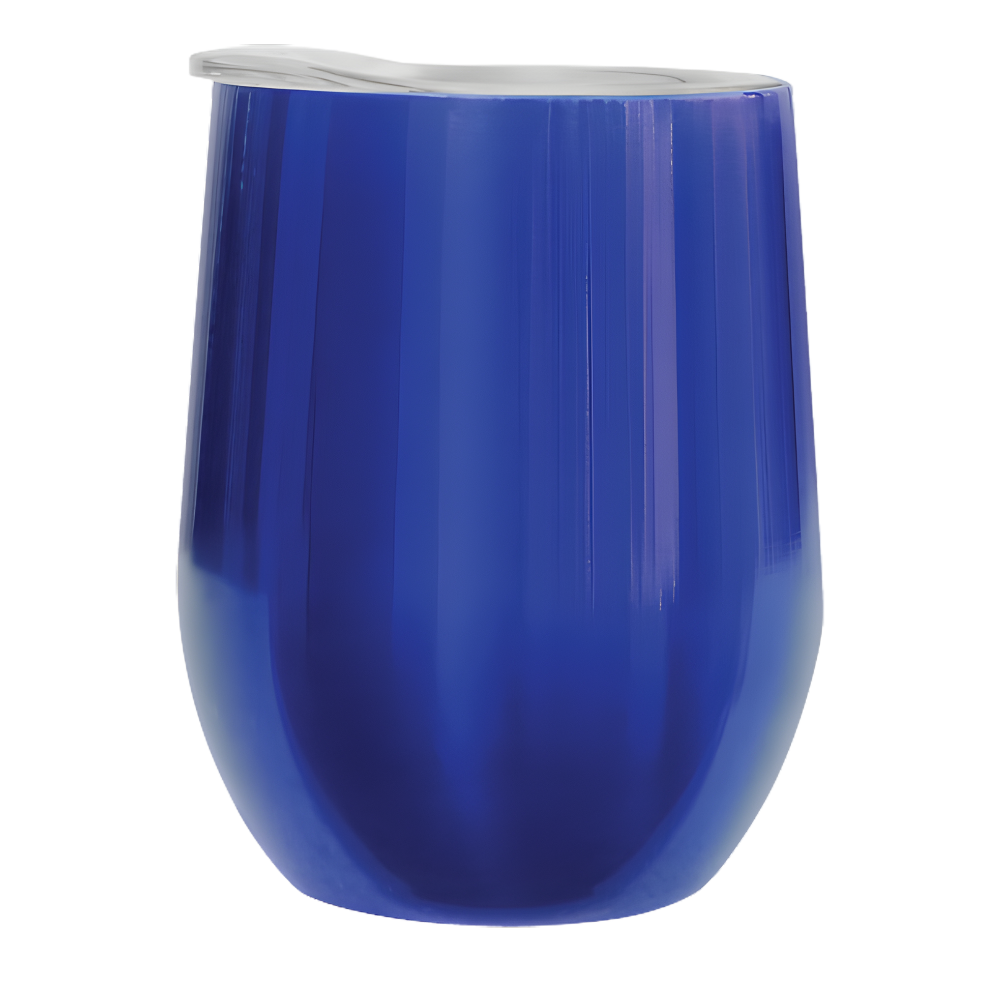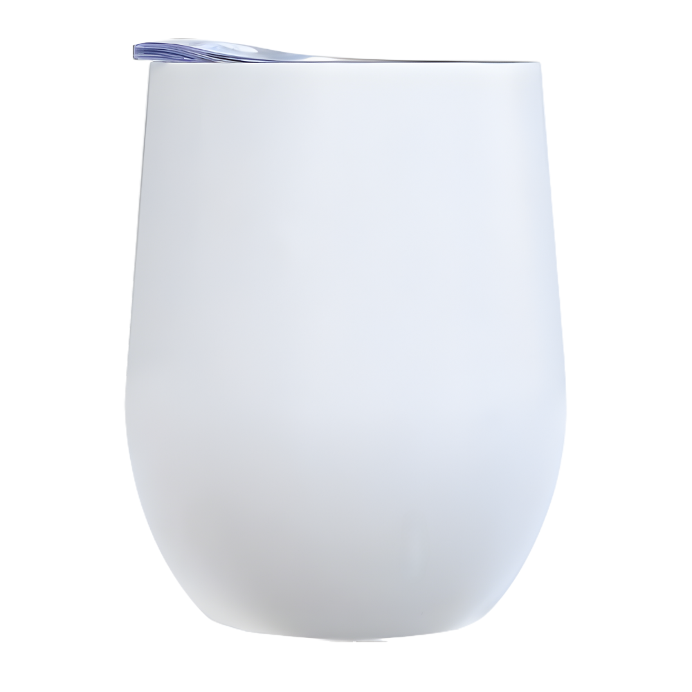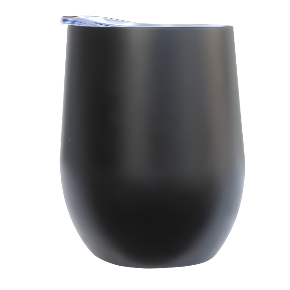 12 oz. powder coated double walled vacuum insulated stainless steel stemless wine glass for your wine or any drink/cocktail. Looks and feels great in any bar, restaurant, or home collection. Includes a clear sipper lid made from BPA free Tritan Plastic. Food safe 18/8 stainless steel. 1 color only imprint. Please inquire for engraving or 4 color process printing.