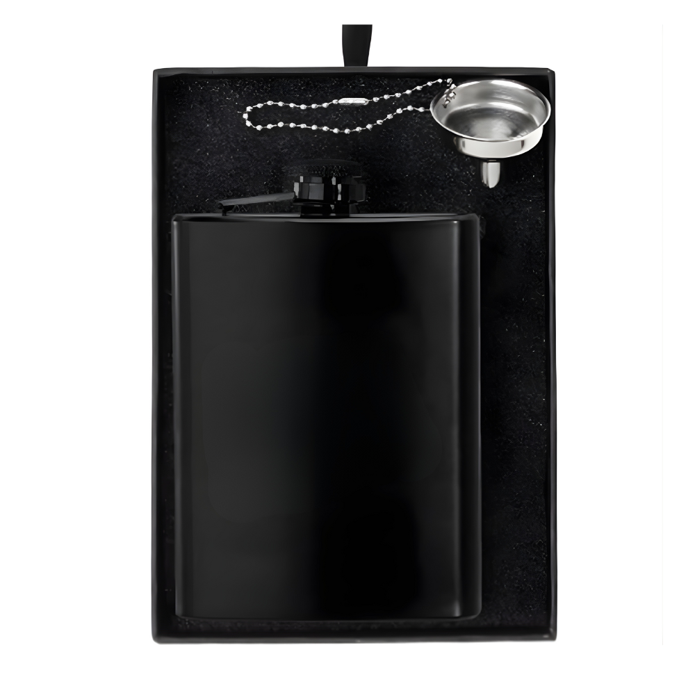 The perfect gift for any spirits or whisky lover. Heavy duty gift box includes a stainless steel 8 oz. hip flask, funnel, and laser engraving on the flask. Please inquire for imprinting on gift box if applicable.