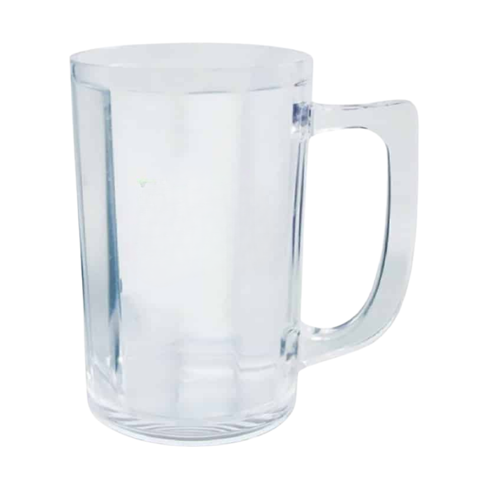 8 oz. Clear Plastic Beer Mug w/Handle is made in USA of clear, durable Styrene Plastic and perfect for indoor and outdoor use. Prices include a one color, one location imprint. Multi-color imprint, 2nd side imprint and full color process imprinting are available. BPA free and recyclable. We offer most any size and shape of USA Made durable plastic drinkware, many in light up styles. Hand wash only.